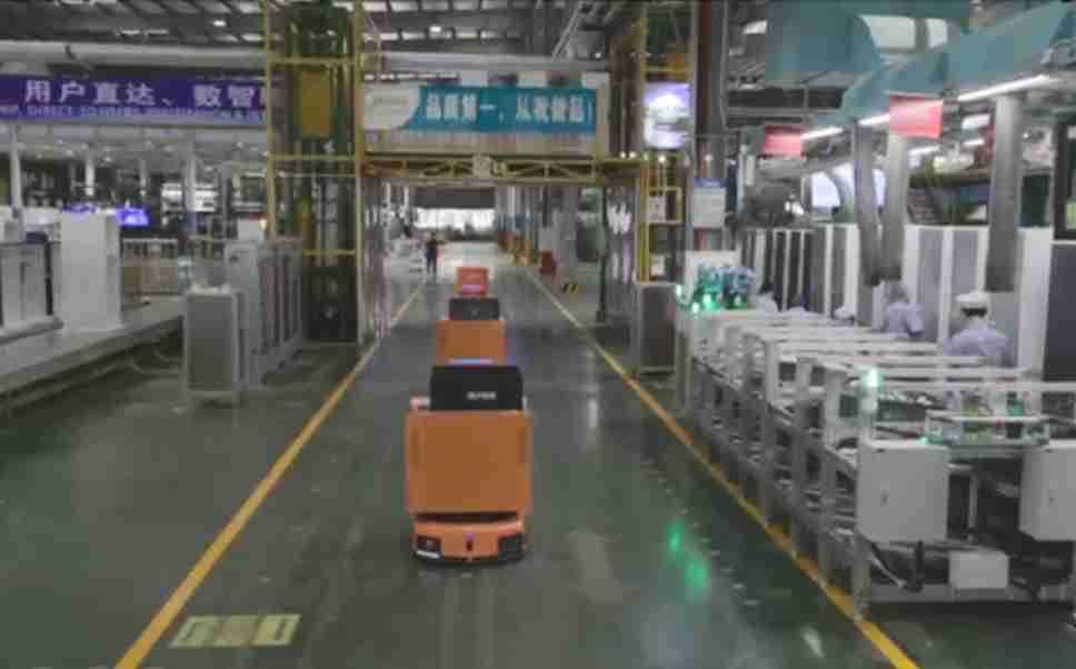 为车载冰箱物流配送打造的智能解决方案,,,包含产中物流通过潜伏举升AMR搬运至线边,,产后成品物流智能仓储,,,,流程包含产中物流智能齐套入库,,线边安灯叫料AMR智能配送至线边,,,,成品入库、、、、出库,,,,通过无人堆高车机器人,,,智能仓储管理替代人工作业管理,,,实现更高存储、、、更高效率、、、、更具柔性化的解决方案。。。